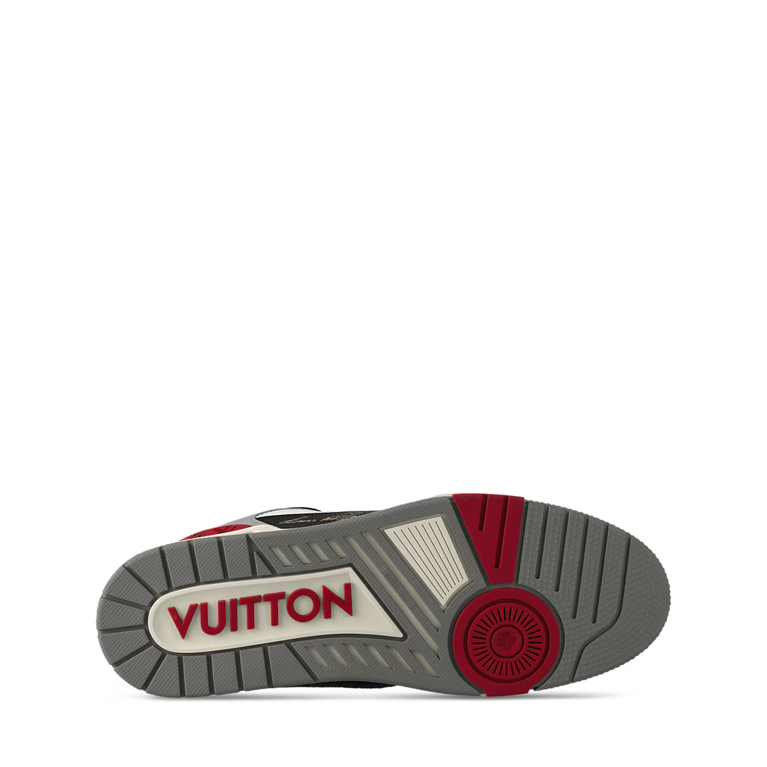 Một trong những phiên bản độc đáo nhất của dòng LV Trainer, kết hợp da bê vân mịn cùng canvas Monogram – mang đậm dấu ấn Virgil Abloh với cảm hứng bóng rổ cổ điển.